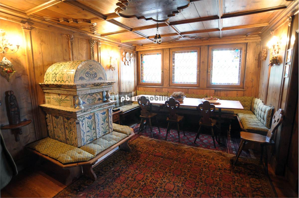 La villa si sviluppa su tre livelli e si compone: al piano terra ampio ingresso, bagno di servizio, soggiorno, zona caminetto - living, zona pranzo in stube ampezzana con 12 posti a sedere, grande cucina abitabile con tavolo per 6/7 persone, giardino esclusivo.