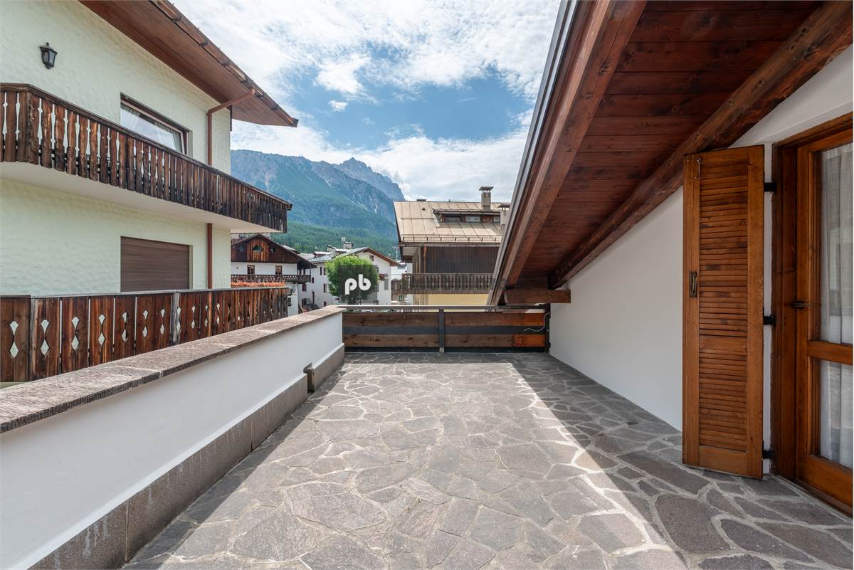 Al piano superiore mansardato: tre locali adibiti a soggiorno / zona living - possibile terza ampia camera - anch'essa con terrazza abitabile con vista sul Pomagagnon, Croda da Lago, Faloria e Tofane, camera matrimoniale, un bagno, un ampio ripostiglio.